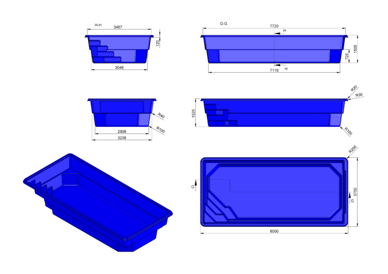 PREMIUM GFK Pool SYCYLIA Bodenpool 8,0 x 3,75 x 1,5 Privatpool